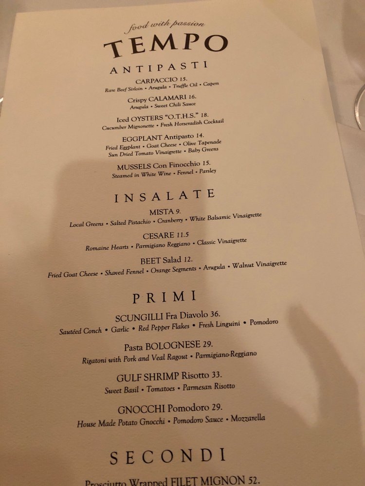 Main dishes shine with options like the succulent prosciutto-wrapped filet mignon and homemade gnocchi, each infused with vibrant flavors that keep patrons coming back for more. Don't miss out on the rich desserts—like their indulgent chocolate cake, which promises to satisfy even the most discerning sweet tooth. Tempo Restaurant is not just a meal; it's a culinary journey that lingers long after you leave.